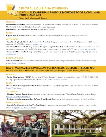 CENTRAL LOUISIANA ITINERARY