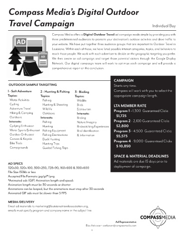 1 - Soft Adventure 2 - Hunting & Fishing 3 - Birding Compass will work with you to select the