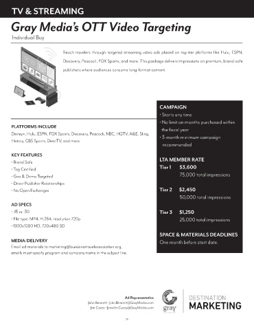 Disney+, Hulu, ESPN, FOX Sports, Discovery, Peacock, NBC, HGTV, A&E, Sling,   • 3-month minimum campaign
