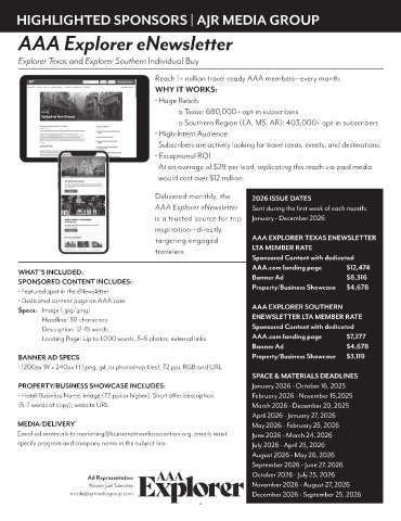 AAA Explorer eNewsletter Sent during the first week of each month: