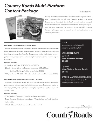 ments across Country Roads’ print and digital platforms—including direct access to