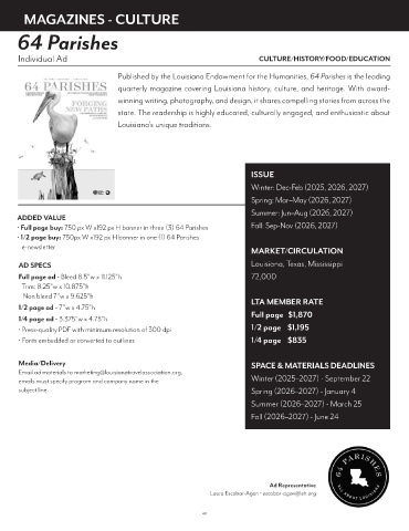 • Full page buy: 750 px W x192 px H banner in three (3) 64 Parishes   Fall: Sep-Nov (2026, 2027)