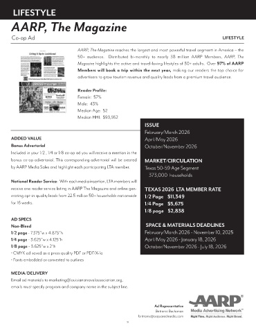 receive one reader service listing in AARP The Magazine and online gen- TEXAS 2026 LTA MEMBER RATE
