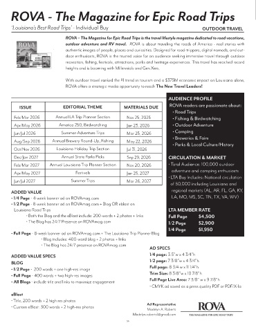 • Full Page - 8-week banner ad on ROVAmag.com + The Louisiana Trip Planner Blog