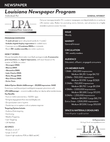 Get your message placed in 70+ Louisiana newspapers and digital platforms at exclusive