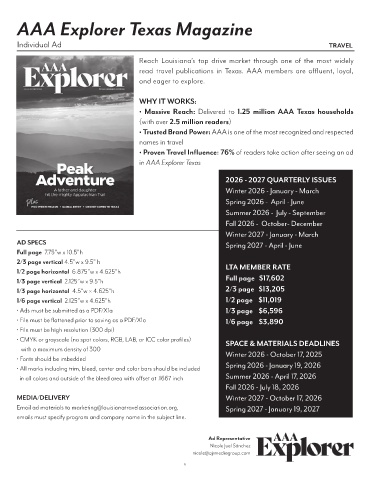 Email ad materials to marketing@louisianatravelassociation.org, Spring 2027 - January 19, 2027