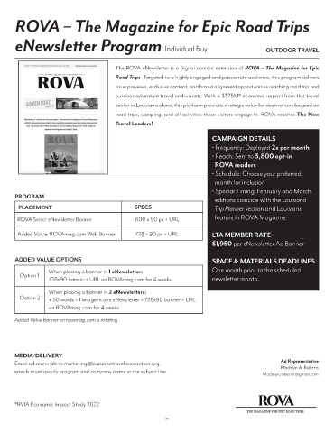 728x90 banner + URL on ROVAmag.com for 4 weeks newsletter month.