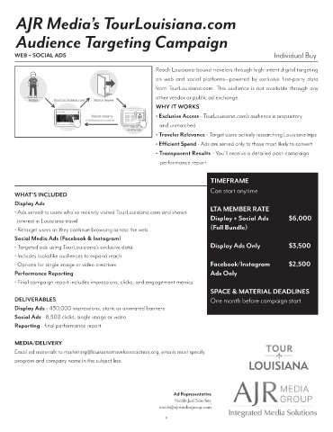 • Ads served to users who’ve recently visited TourLouisiana.com and shown LTA MEMBER RATE