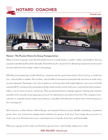 When it comes to group travel, Hotard stands out as a trusted leader in comfort, safety, and reliability. Serving