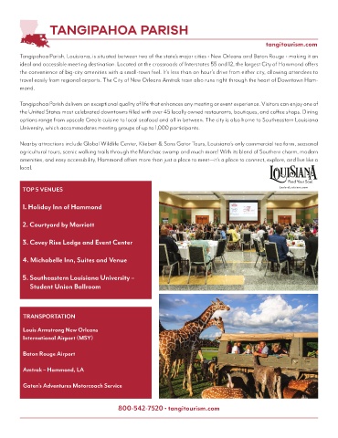 ideal and accessible meeting destination. Located at the crossroads of Interstates 55 and 12, the largest City of Hammond offers