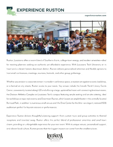 for meeting planners seeking an authentic yet affordable experience. With Louisiana Tech University at its