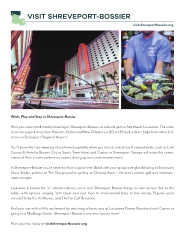 Casino & Hotel in Bossier City or Sam’s Town Hotel and Casino in Shreveport. Groups will enjoy the conve-