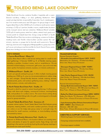 318-256-5880 • sptc@toledobendlakecountry.com • toledobendlakecountry.com