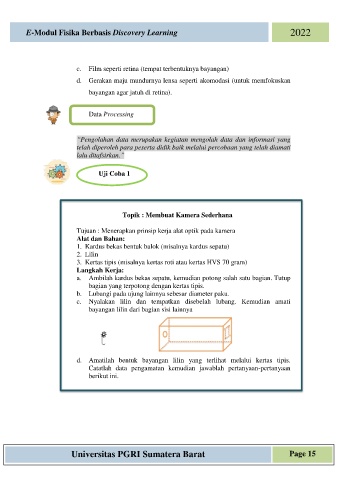 Tujuan : Menerapkan prinsip kerja alat optik pada kamera