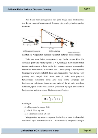 Ada 2 cara dalam menggunakan lup, yaitu dengan mata berakomodasi