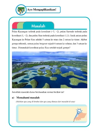 koordinat (1, −2), dan pulau Siau terletak pada koordinat (1,1). Jarak antara pulau