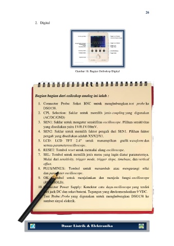 10. Connector Power Supply: Konektor catu daya oscilloscope yang terdiri
