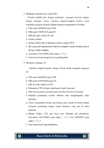 mengukur tegangan keluaran adaptor dengan menggunakan osiloskop.
