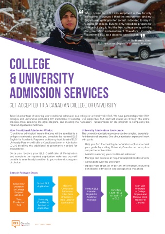 colleges and universities (including 30+ institutions in Canada). Our supportive ELS staff will assist you through the entire