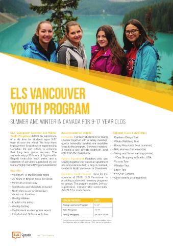 • 25 hours of English class per week summer of 2020, ELS Vancouver is • Other events as announced
