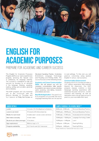 Program availability ELS Toronto and ELS Vancouver 3:00 p.m. – 4:00 p.m. Reading/Writing