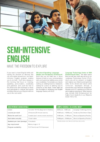 Semi-intensive course details sample schedule: 20 lessons/week*