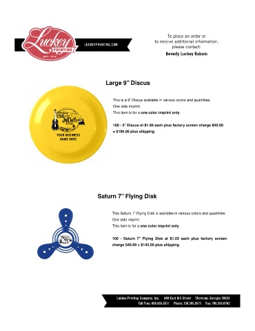 IMPRINT AREA AND METHOD: 1 ½" Diameter Luckey Printing Company, Inc. 440 East Hill Street Thomson, Georgia 30824