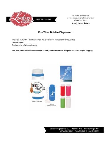 This is a 2 oz. Fun time Bubble Dispenser that is available in various colors and quantities.