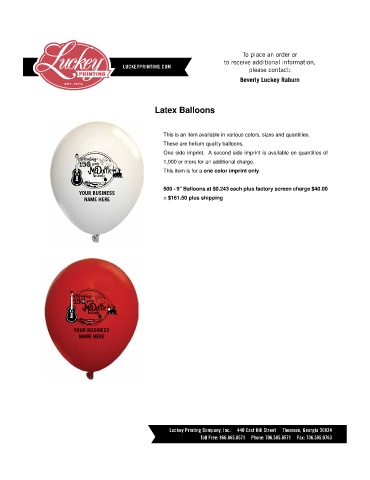 500 - 9” Balloons at $0.243 each plus factory screen charge $40.00