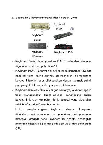 a. Secara fisik, keyboard terbagi atas 4 bagian, yaitu: