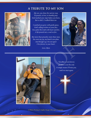 My son, you chose the narrow way, To preach, to love, to humbly pray. God marked your steps before you knew, But so did I, I walked them too.