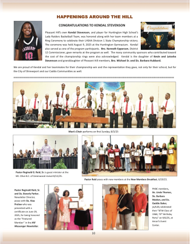 12 Commissioner, gave remarks at the program as well. The many community sponsors who contributed toward the cost of the championship rings were also acknowledged. Kendal is the daughter of Kevin and Latosha Stevenson and granddaughter of Pleasant Hill members, Bro. Michael Sr. and Sis. Barbara Hubbard.