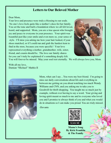 No one’s love feels quite like a mother’s does for her family. You set the tone and built a foundation where we all felt loved, heard, and supported. Mom, you are a true queen who brought joy and peace to everyone in your presence. Your spirit was beautiful-just like your smile-and even more so, your sense of