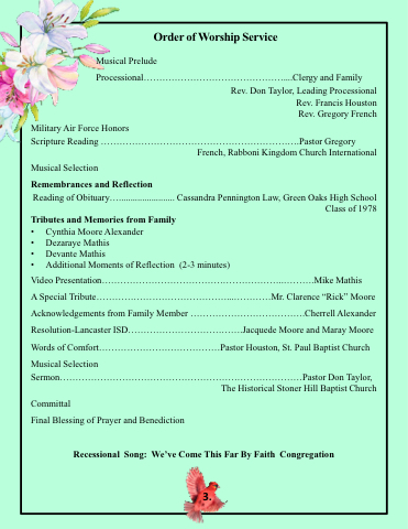 Words of Comfort.......................................Pastor Houston, St. Paul Baptist Church