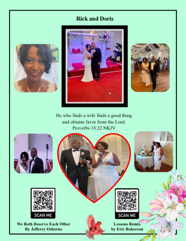 Rick and Doris He who finds a wife finds a good thing and obtains favor from the Lord. Proverbs 18:22 NKJV We Both Deserve Each Other Lessons Remix By Jefferey Osborne 6. by Eric Roberson