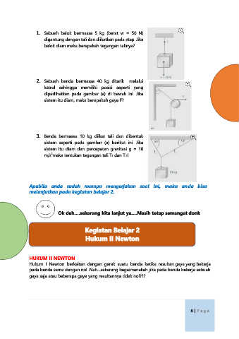 1. Sebuah balok bermassa 5 kg (berat w = 50 N)