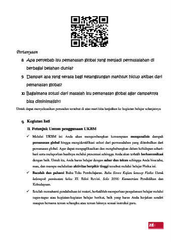 pemanasan global. Agar dapat mengaplikasikan dan menghubungkan dalam kehidupan sehari-
