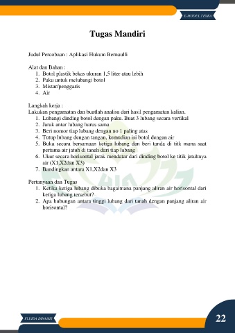 Judul Percobaan : Aplikasi Hukum Bernaulli
