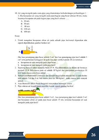 10. Air yang mengalir pada suatu pipa yang diameternya berbeda dengan perbandingan 1 :