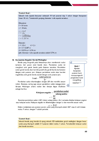 Sebuah  roda  sepeda  berputar  sebanyak  10  kali  putaran  tiap  1  sekon  dengan  kecepatan