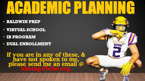 ACADEMIC PLANNING • BALDWIN PREP • VIRTUAL SCHOOL • IB PROGRAM • DUAL ENROLLMENT If you are in any of these, & have not spoken to me, please send me an email @ kbking@bcbe.org.