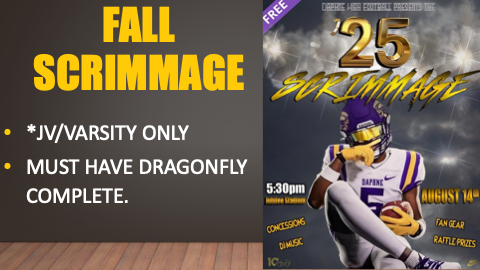 • *JV/VARSITY ONLY • MUST HAVE DRAGONFLY COMPLETE. FALL SCRIMMAGE