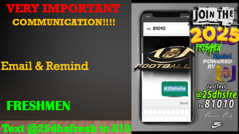 VERY IMPORTANT COMMUNICATION!!!! Email & Remind Text @25dhsfresh to 81010 FRESHMEN