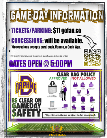 TICKETS/PARKING: $11 gofan.co CONCESSIONS: will be available. *Concessions accepts card, cash, Venmo, & Cash App. *All family, friends, and fans must purchase a ticket to enter. GATES OPEN @ 5:00PM