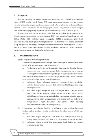 proyek (PBP) melalui modul. Desain PBP merupakan pengembangan pengajaran yang