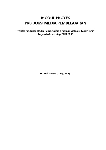 MODUL PROYEK PRODUKSI MEDIA PEMBELAJARAN Praktik Produksi Media Pembelajaran melalui Aplikasi Model Self- Regulated Learning “APPEAR” Dr. Yudi Munadi, S.Ag., M.Ag.