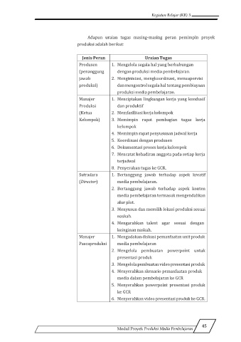 Adapun uraian tugas masing-masing peran pemimpin proyek