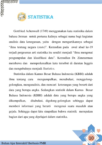 Gottfried Achenwall (1749) menggunakan kata statistika dalam