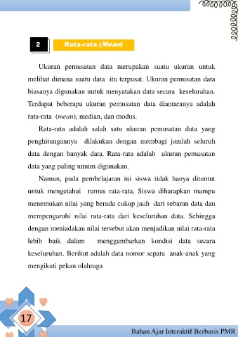 data dengan banyak data. Rata-rata adalah ukuran pemusatan