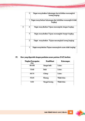 IV. Skor yang diperoleh dengan penilaian acuan patokan (PAP) berikut.